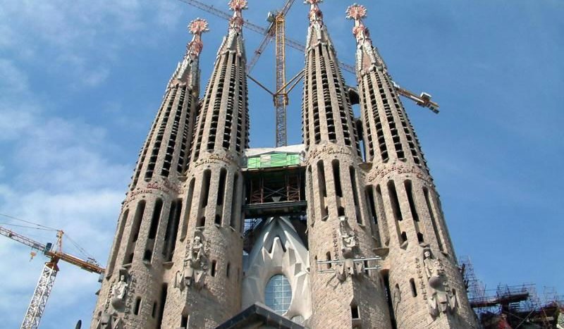 Самое известное творение европейского модерна и самый знаменитый архитектурный памятник Эшампле — церковь Саграда Фамилиа (церковь Святого Семейства, Sagrada Familia) великого архитектора Антонио Гауди. Строительство церкви было начато в 1889 году, но при жизни Гауди был завершен лишь фасад Рождества, после смерти архитектора строительство продолжалось по его чертежам, однако, его завершению помешала гражданская война. К 1954 году были восстановлены первоначальные планы Гауди и работа над храмом продолжилась, однако по сей день идут споры о достоверности реконструкции. Фасад Рождества, завершенный Гауди в 1904 году, воплощает образы Веры, Надежды и Милосердия. Скульптурные композиции на порталах изображают сцены рождения Христа и его детства. Противоположный фасад храма — фасад Страстей Христовых был закончен в 1980 году под руководством Жозепа Марии Субиракса. К постройкам, сделанным при жизни Гауди, относятся апсида, алтарный балдахин и крипта. В крипте находится могила Гауди, здесь проходит служба. Под алтарным балдахином до сих пор не установлен алтарь. Завершить строительство храма предполагается возведением нефа и южного фасада Славы, который должен стать главным входом. Законченное здание в плане должно приобрести форму латинского креста, а верхние галереи должны опираться на множество резных колонн.