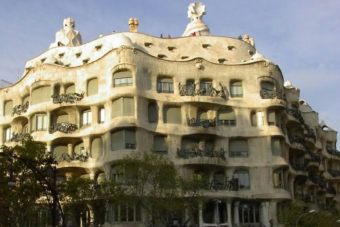 Одним из самых известных памятников модерна Золотого квадрата, Эшампле и вообще Барселоны является Каса Мила (Casa Mila или Ла-Педрера, La Pedrera — каменоломня) — важнейший вклад Гауди в архитектуру города. Здание расположено на Пассеч-де-Грасья, его строительство шло с 1906 по 1910 год. Проект этого восьмиэтажного углового здания предусматривал два круглых внутренних двора для вентиляции и первый в Барселоне подземный гараж. Во всем здании нет ни одной ровной стены, наружные стены ничем не отделаны, их украшают лишь причудливые решетки балконов, созданные Жозепом Марией Жужолем. Крышу дома увенчивают поражающие воображение печные и вентиляционные трубы, которые жителями города в шутку называются «пугалом для ведьм».