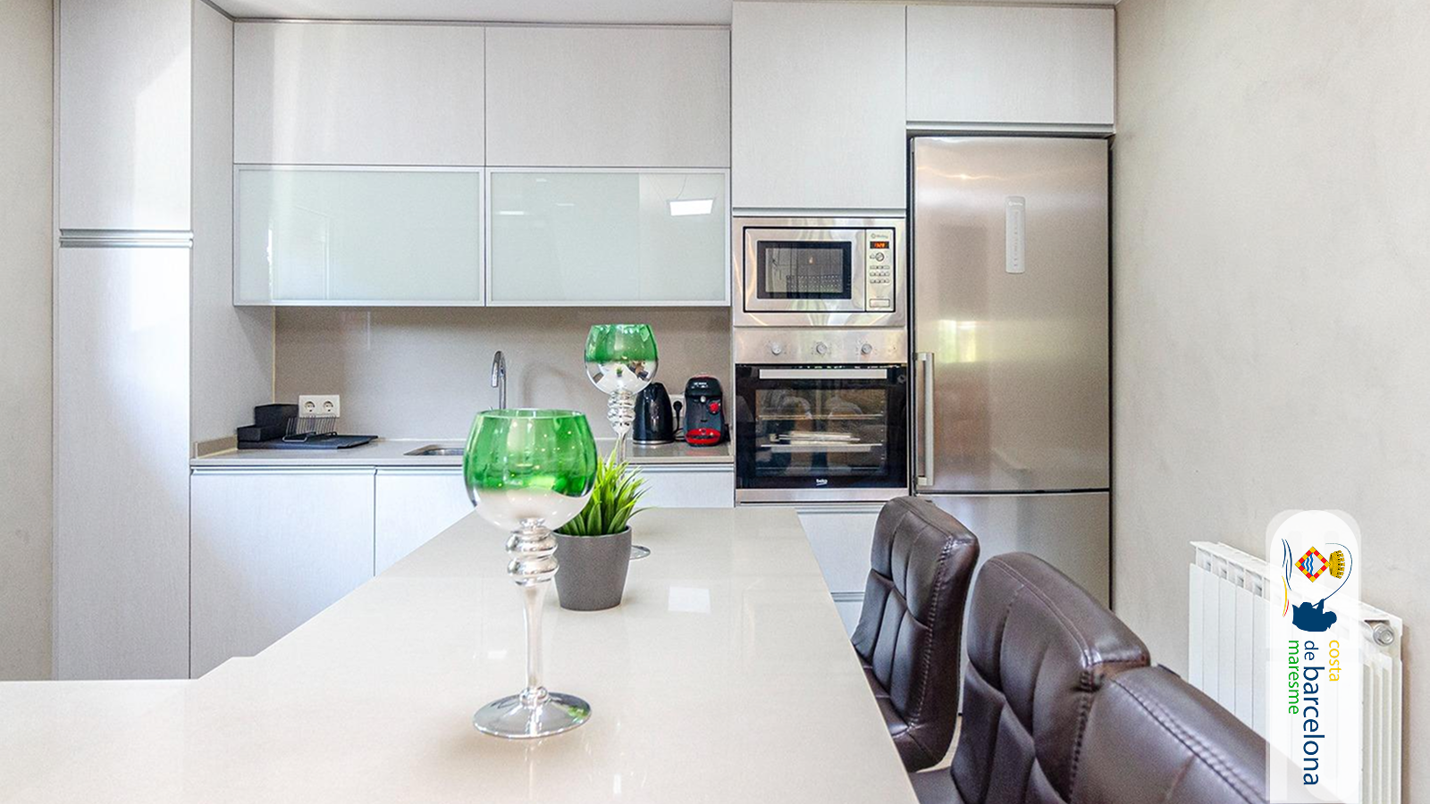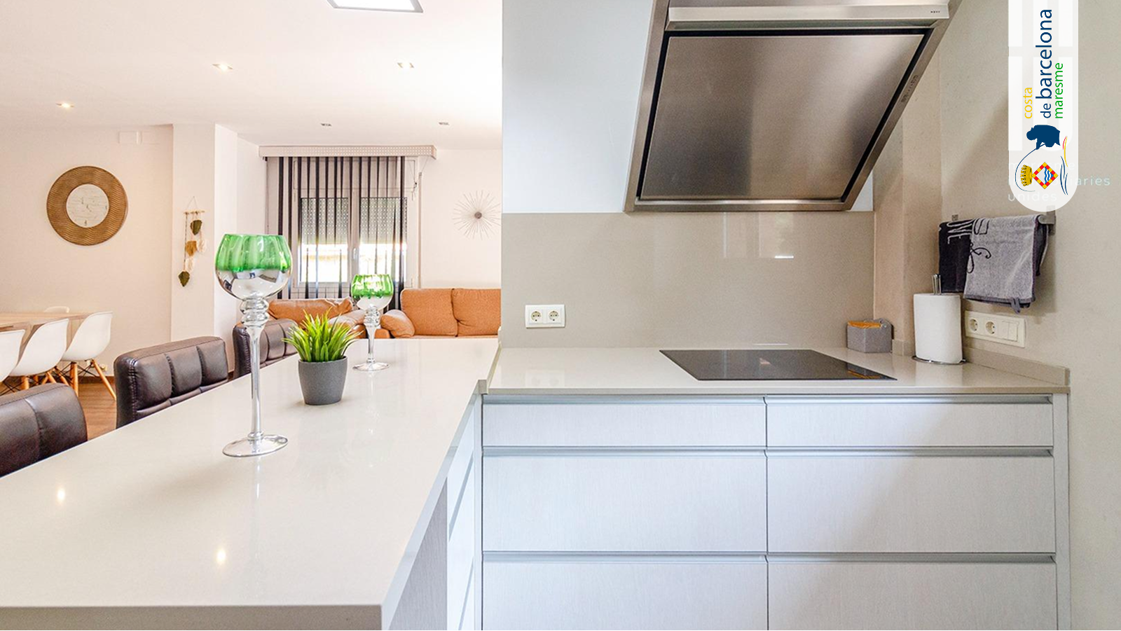Дом расположен в тихом районе Алельи, всего в 10 минутах от Барселоны и рядом с пляжем Эль-Масноу. Район славится своей безопасностью, зеленью и близостью к инфраструктуре — школам, магазинам, ресторанам и транспортным развязкам.